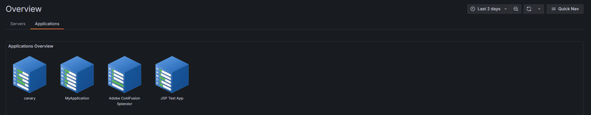 The Quick Nav is a dropdown menu providing immediate, centralized access to the most frequently used views - Home, Overview, Applications, Servers, and Configuration.
